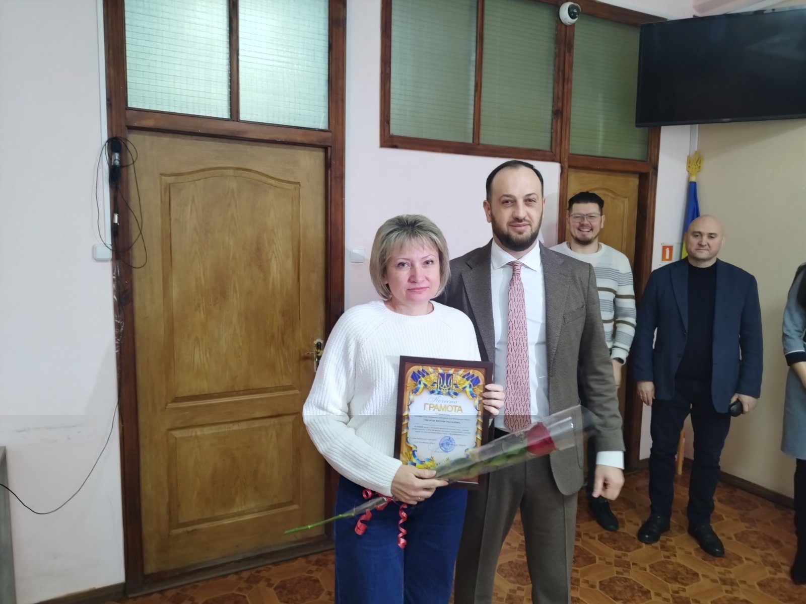 До привітань долучився голова суду Олександр Герцов, який відзначив помічника судді Вікторію Григораш Почесною грамотою та побажав колективу суду незмінної мудрості, непохитної витримки, наснаги та сил у такій відповідальній праці як служіння народу України, а також зазначив, що чесність та професіоналізм кожного з працівників суду повинні бути запорукою довіри суспільства.